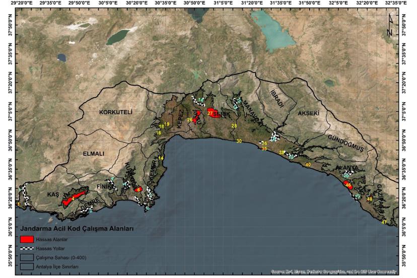 ANTALYA Valiliği, orman yangınlarının yaklaşık yüzde 70'inin çıktığı 0-400 metre rakım aralığındaki alanlarda, toplam 125 hassas nokta belirledi. 'Acil kod' uyarısı yapıldığında, ilgili belediyeler, jandarma, emniyet ve Sahil Güvenlik ekipleri gerekli önlemleri alacak.
