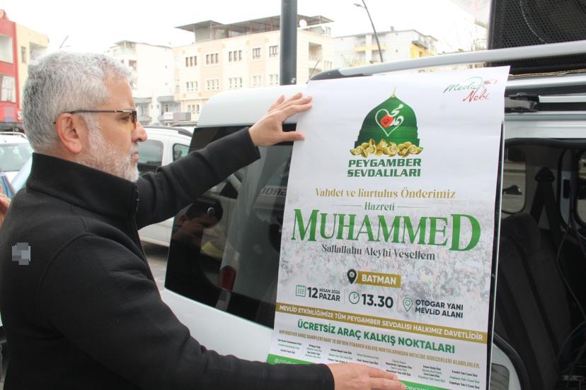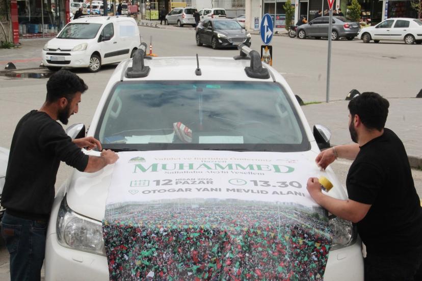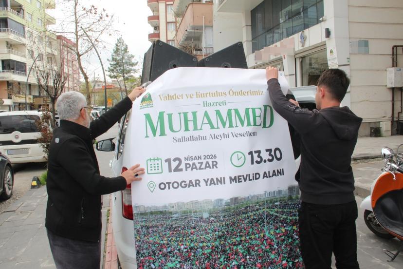 Batman'da düzenlenecek "Vahdet ve Kurtuluş Önderimiz Hazreti Muhammed" temalı Mevlid-i Nebi etkinliği öncesi kent genelinde hazırlıklar hız kazandı. Anons araçlarıyla vatandaşlar programa davet ediliyor.