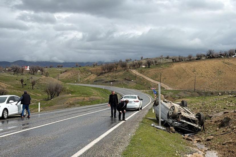 Takla atan araçta bulunan yaralı, ilk müdahalenin ardından ambulansla hastaneye kaldırıldı.