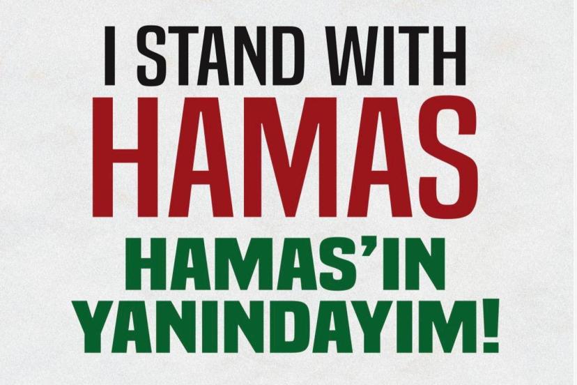 Kapıya asılan yazıda, “I stand with HAMAS / HAMAS’ın yanındayım” ifadeleri yer aldı. Demir'in HAMAS'a bu desteği sosyal medya kullanıcıları tarafından takdirle karşılandı.
