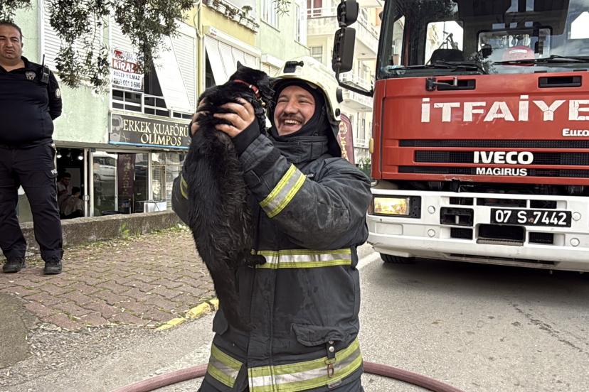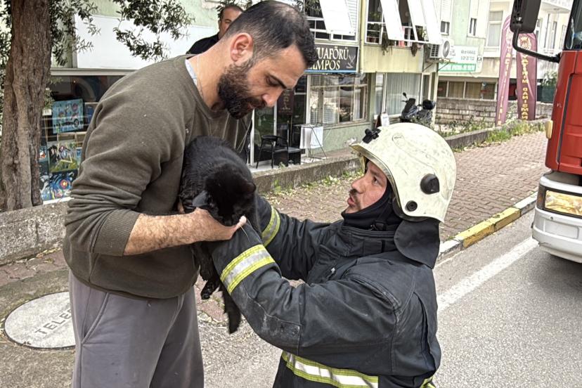 Yanan dairede kedi olduğunun öğrenilmesi üzerine bir itfaiye eri içeride hayvanı aradı. Dumandan etkilenen kediyi dışarı çıkartan itfaiye eri, hayvana kalp masajı yaptı. Uzun uğraş sonucu kediyi yaşama bağlayan itfaiye eri, gülümseyerek hayvanı öptü. Kediyi alan daire sahibinin damadı ise hemen veterinere götürdü.