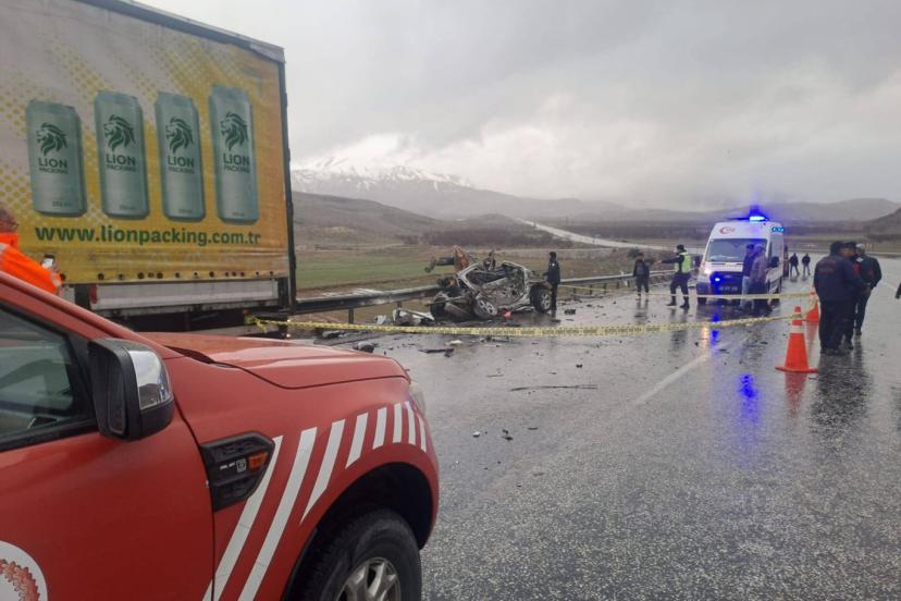 Feci kazada otomobil adeta hurda topuna dönerken içinde bulunan ve kimlikleri henüz öğrenilemeyen 3 kişi olay yerinde hayatını kaybetti, tır sürücüsü ise yaralandı.