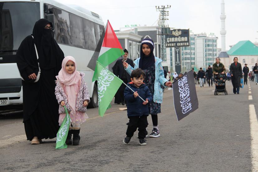 Fatma Betül çelik ise "Çok iyi yaptık buraya gelmeye. Gerçekten çok memnunum. İnşallah daha çok memnun olurum. Yani Peygamber Efendimizi de çok seviyoruz. Peygamberimiz olduğu için çok mutluyuz. Bayrak sallayacağız." şeklinde konuştu.