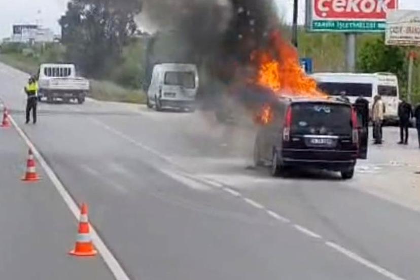 Seyir halindeki hafif ticari araçta çıkan yangın söndürüldü