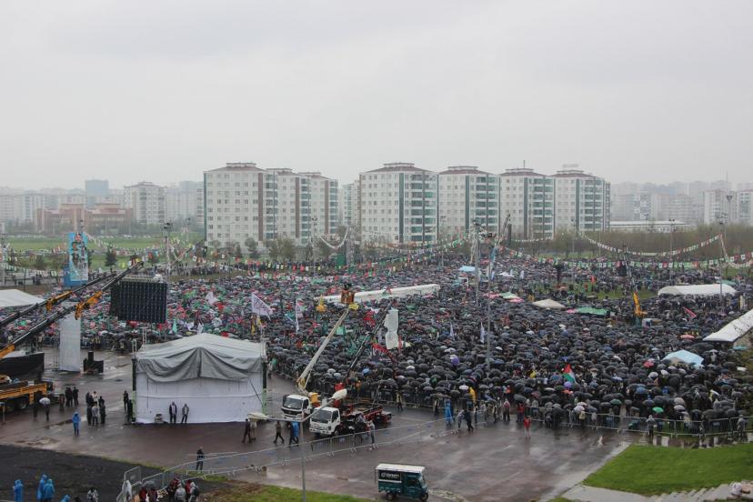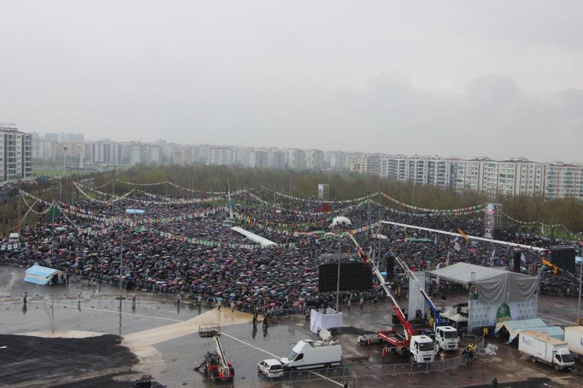 Peygamber Sevdalıları Vakfı tarafından bu yıl "Vahdet ve Kurtuluş Önderimiz Hazreti Muhammed" temasıyla düzenlenen Mevlid-i Nebi mitingi, Bağlar ilçesinde bulunan Nevruz Park Alanı'nda saat 13.30 itibarıyla başladı.