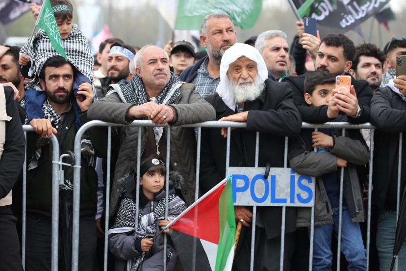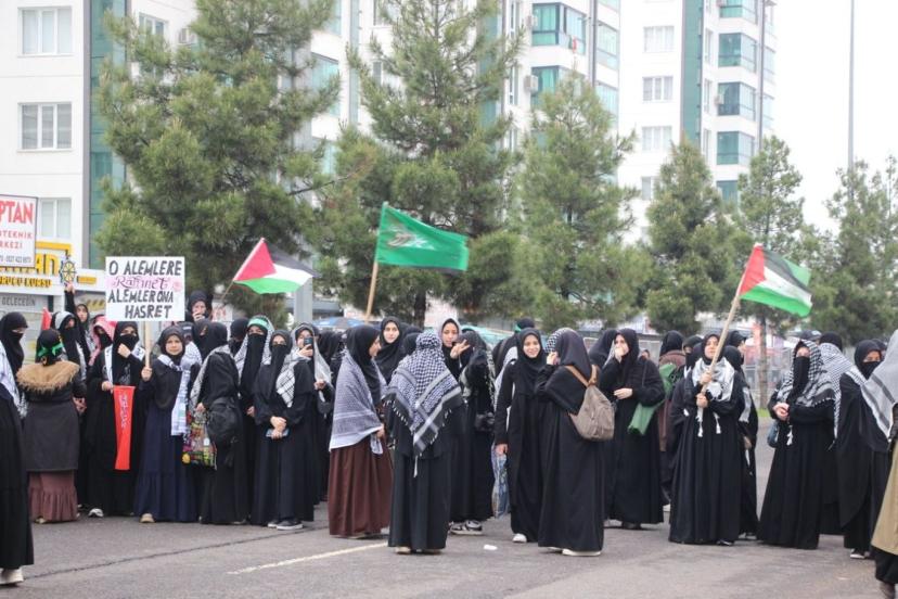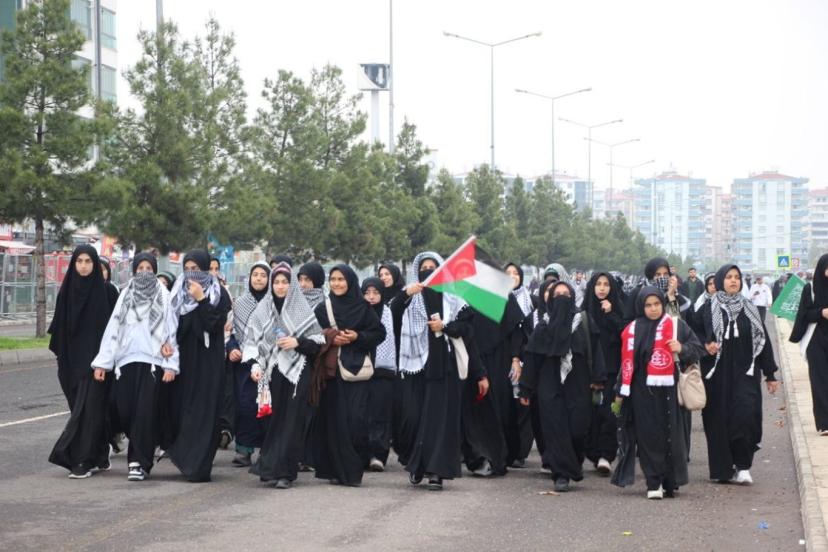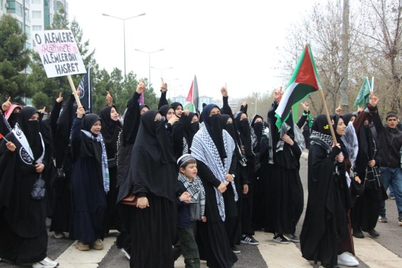 Katılımcılar ise ellerinde Tevhid ve Filistin bayrakları ile Hazreti Peygambere sevgilerini ifade eden pankart ve dövizlerle görsel şölen oluşturdu.
